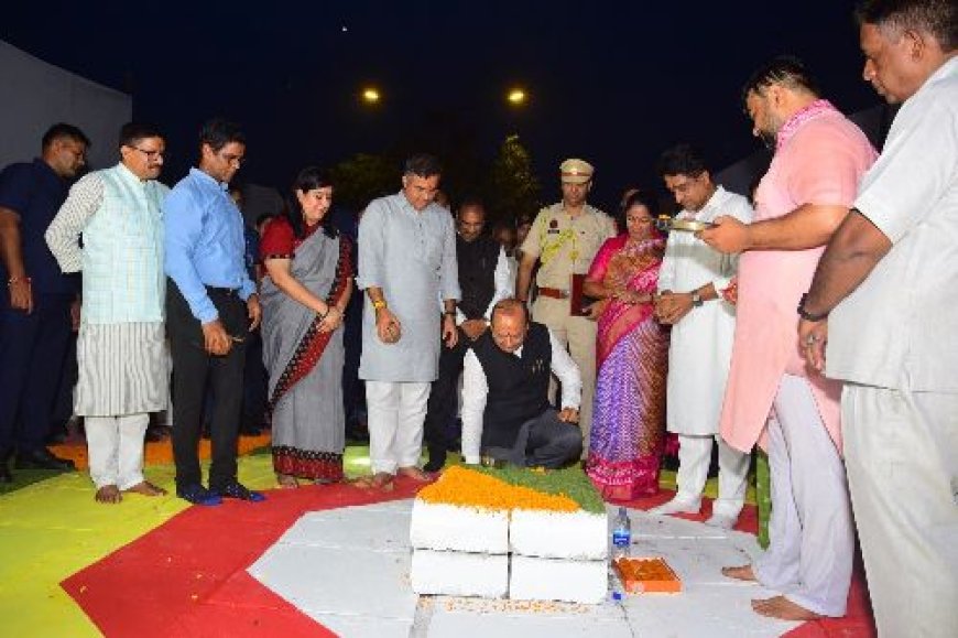 माननीय उपराज्यपाल, श्री वी.के. सक्सेना ने तालकटोरा-मंदिर मार्ग जंक्शन पर एनडीएमसी के समय स्तम्भ ( क्लॉक टावर ) का शिलान्यास किया।